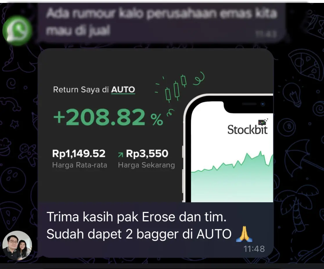 Pengalaman Beliau dapet 5x BAGGER bersama The Investor, begabung dari tahun 2021 dan sudah merasakan return 500% dari saham dengan aman, tenang dan tumbuh bersama kami.